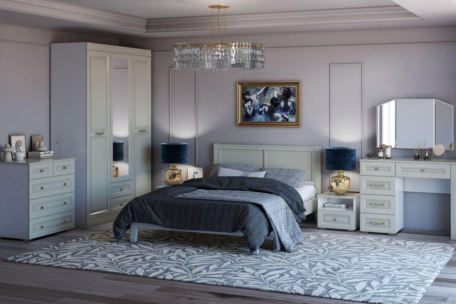 Модульная коллекция мебели для обустройства спальной комнаты. Материал: МДФ, ЛДСП.