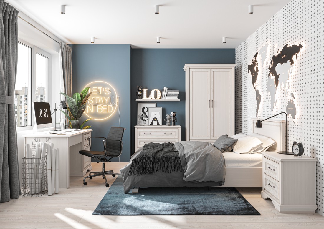 Современная модульная мебель для спальной комнаты. Материал: ЛДСП.