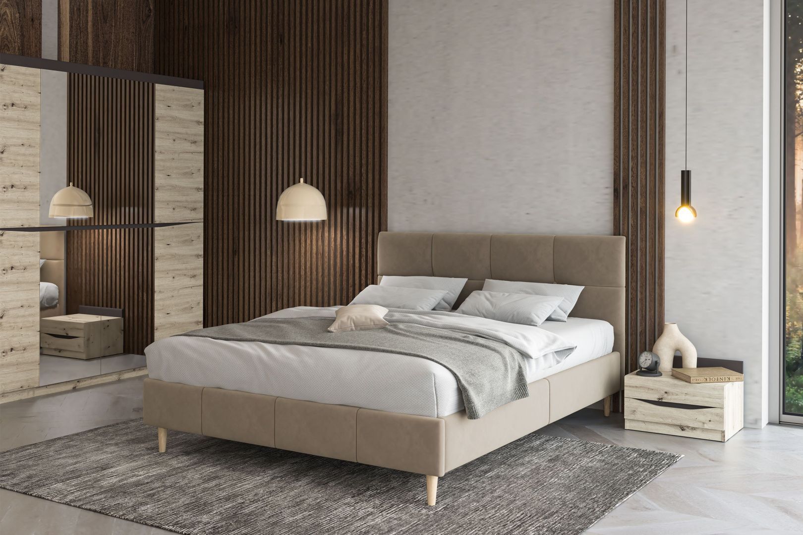 код 152637Модульная серия мебели для спальни в песочно-бежевых тонах. Материал: МДФ, ЛДСП.