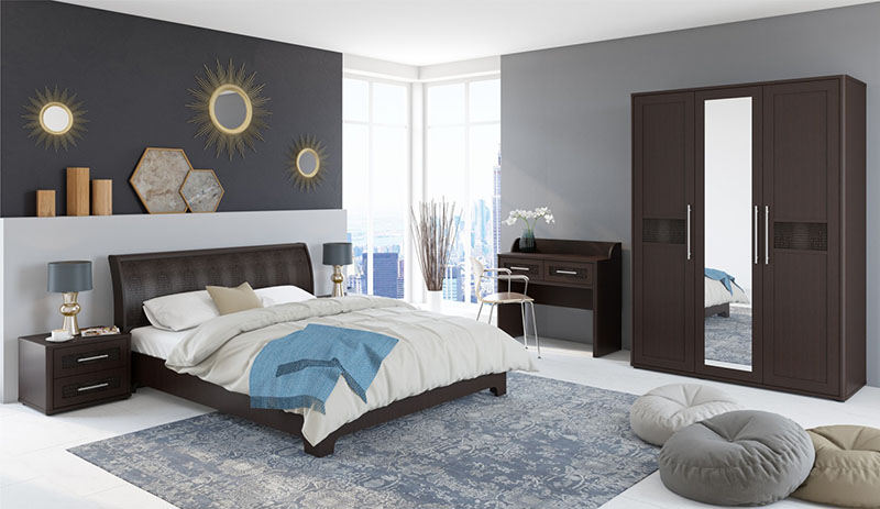 Классическая коллекция мебели для обустройства спальной комнаты. Материал: МДФ покрытый плёнкой, ЛДСП.
