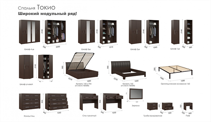 Модульная спальня «Эшли» венге-дуб сонома, вариант 1