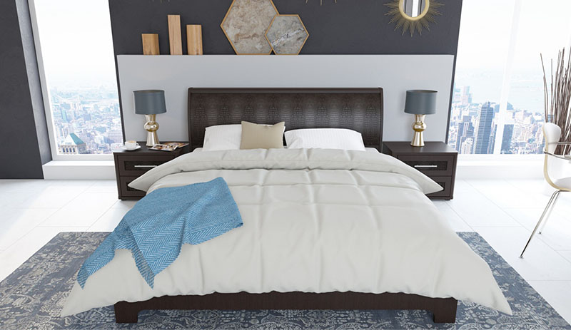Современный комплект мебели в спальню в двухцветном оформлении.
