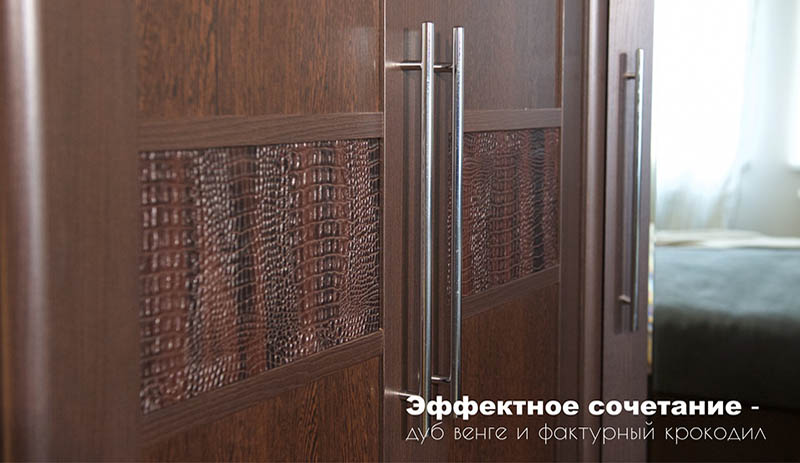 - Фасад: МДФ со вставками ЛДСП, вставки из экокожи «крокодил».