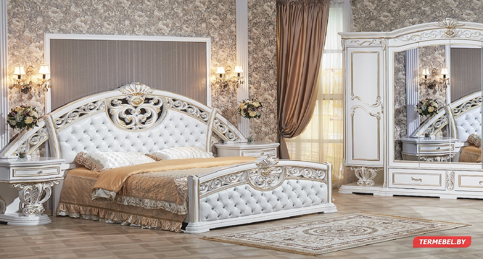 - Декоративные элементы, фасады, накладки покрыты золотой патиной и матовым лаком