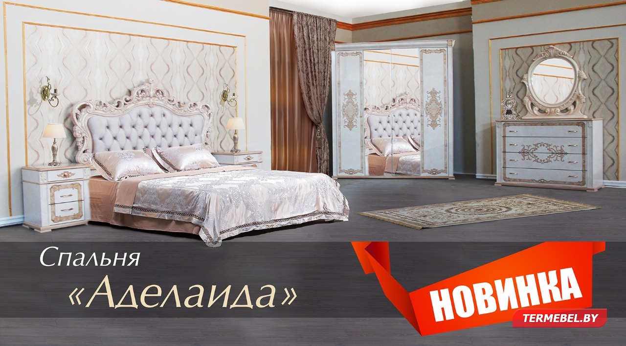 Цена на изделие указана за набор: шкаф, кровать,тумба прикроватная 2шт, туалетный столик, зеркало, пуф.