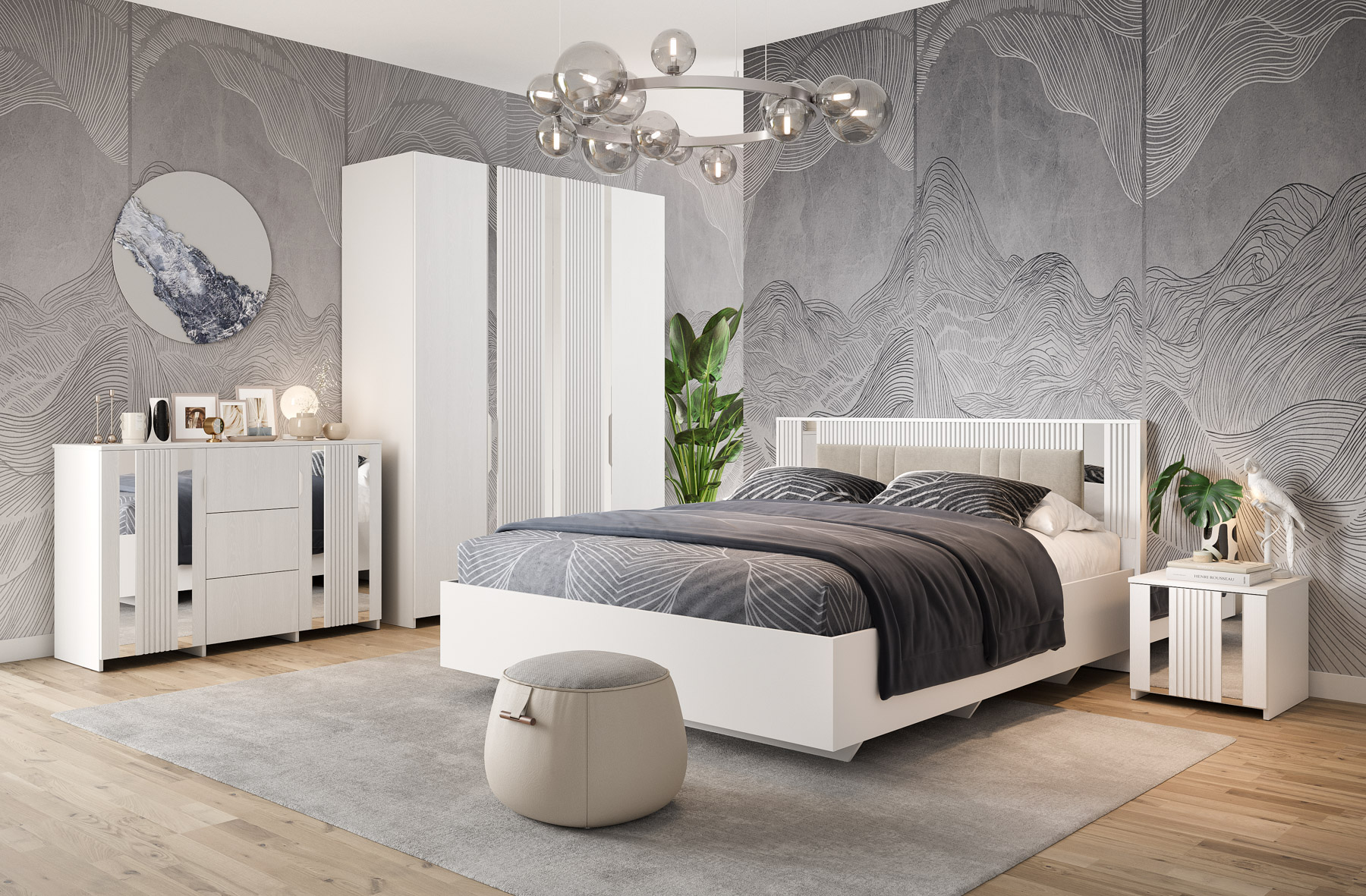 Модульная мебель для спальни в стильном и гармоничном дизайне. Материал: МДФ, ЛДСП.