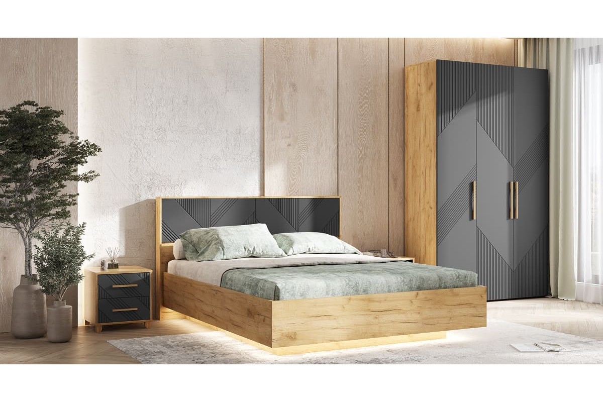 Набор мебели для спальни «Ирис» (Дуб Крафт Золотой - Браш Графит)