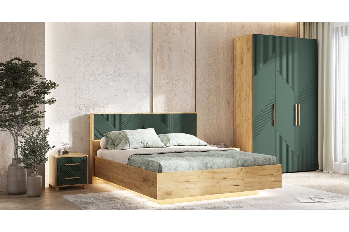 Набор мебели для спальни «Ирис» (Дуб Крафт Золотой - Браш Мени Грин)
