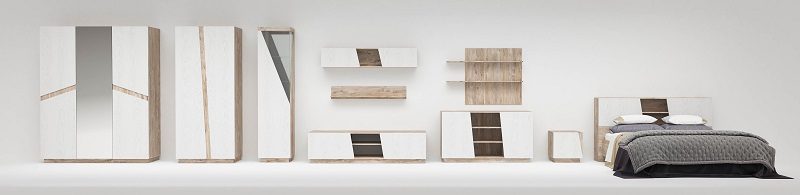 Современная модульная мебель для спальной комнаты. Материал: ЛДСП.