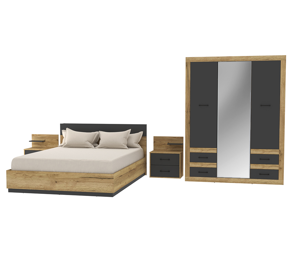 Спальня «Сканди» комплект 1, графит/дуб вотан (Мебель-Неман)