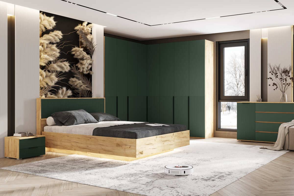 Набор мебели для спальни «Марвэл» (Дуб Крафт Золотой - Браш Мени Грин)