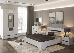 Белоснежный модульный гарнитур для обустройства спальни. Материал: МДФ, ЛДСП.