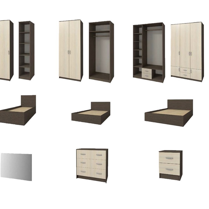 Современная модульная мебель для спальной комнаты. Материал: ЛДСП.