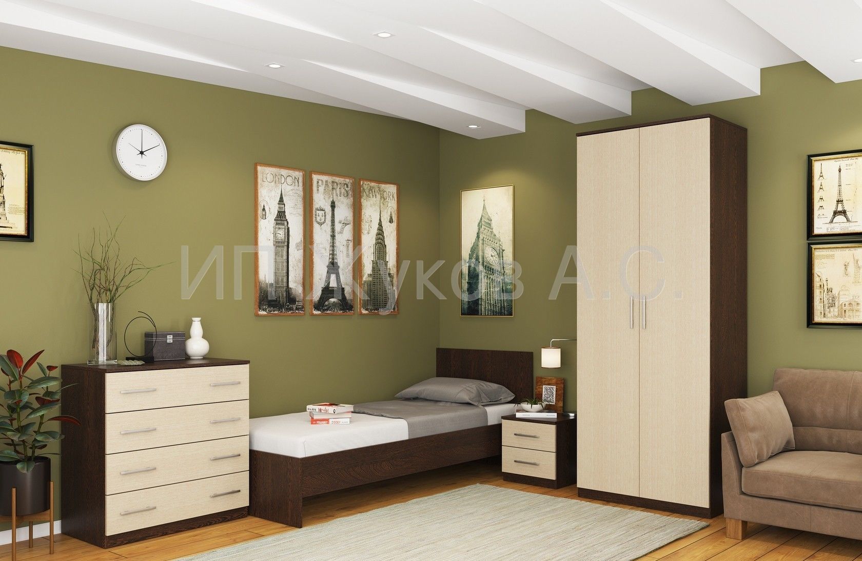 код 139893Комплектация: кровать односпальная, комод, шкаф 2ств. Материал: ЛДСП, МДФ.