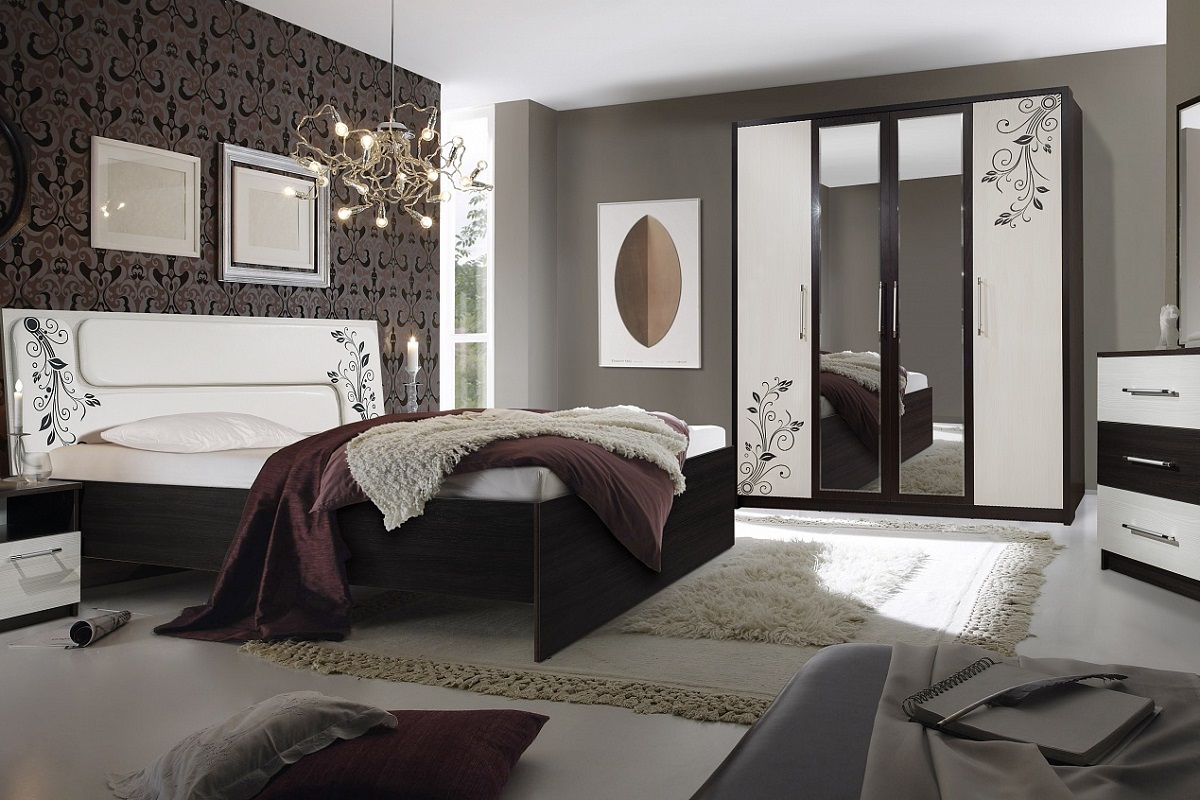 В наборе: кровать, тумба 1шт., шкаф 4дв., комод.