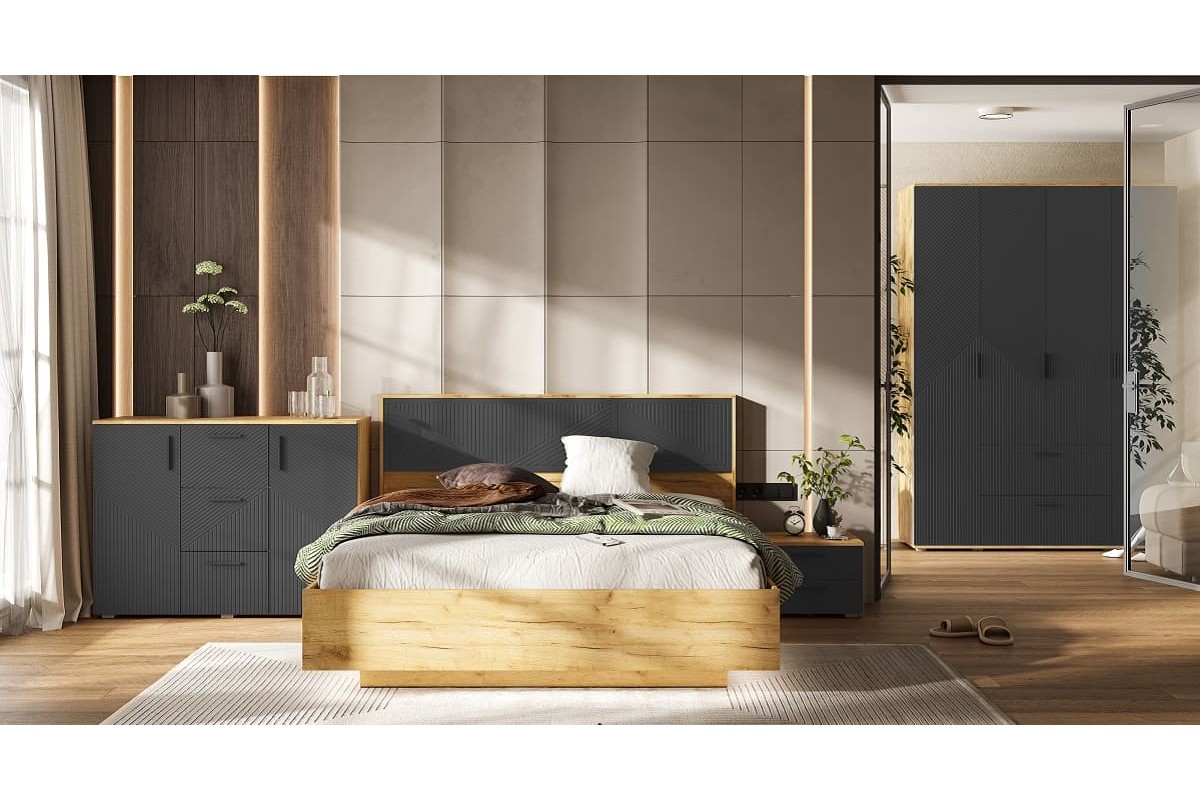 Спальня «Оливия» КМК Дуб Наварра /Шагрень черная