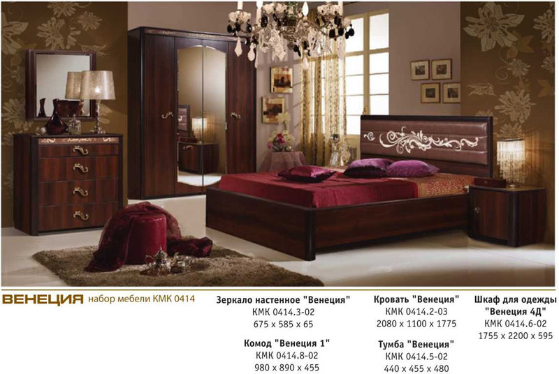 Набор мебели для спальни «Венеция» с фигурной фурнитурой