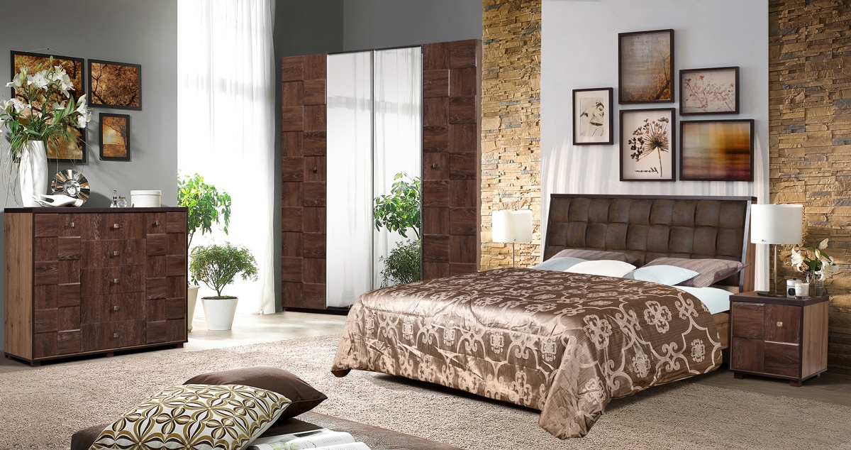 Эстетичная модульная коллекция мебели для спальной комнаты. Материал: МДФ покрытый плёнкой, ЛДСП.