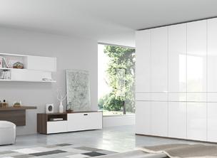 Спальню 1 в белом цвете можно разместить как в малогабаритной комнате, так и в просторной. Белые фасады модели освежают интерьер и визуально увеличивают пространство.