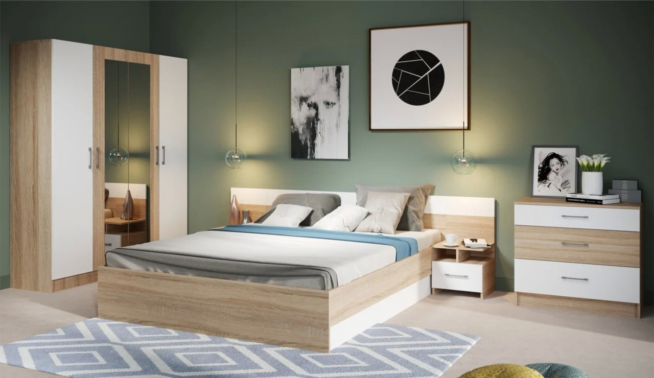 Спальный гарнитур «Антария» Дуб Сонома/Белый без шкафа Imperial