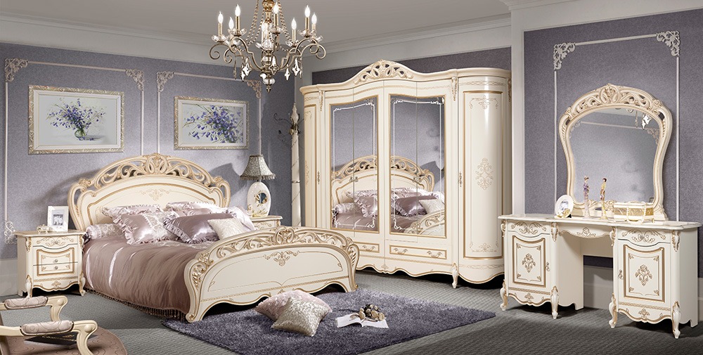 В комплекте: кровать с настилом, комод, шкаф 4дв, тумба прикроватная 2шт.