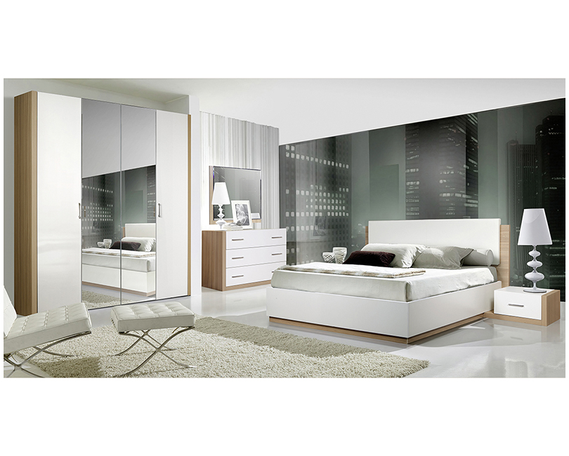 Спальный гарнитур «Антария» белый/Ателье светлый без шкафа Imperial
