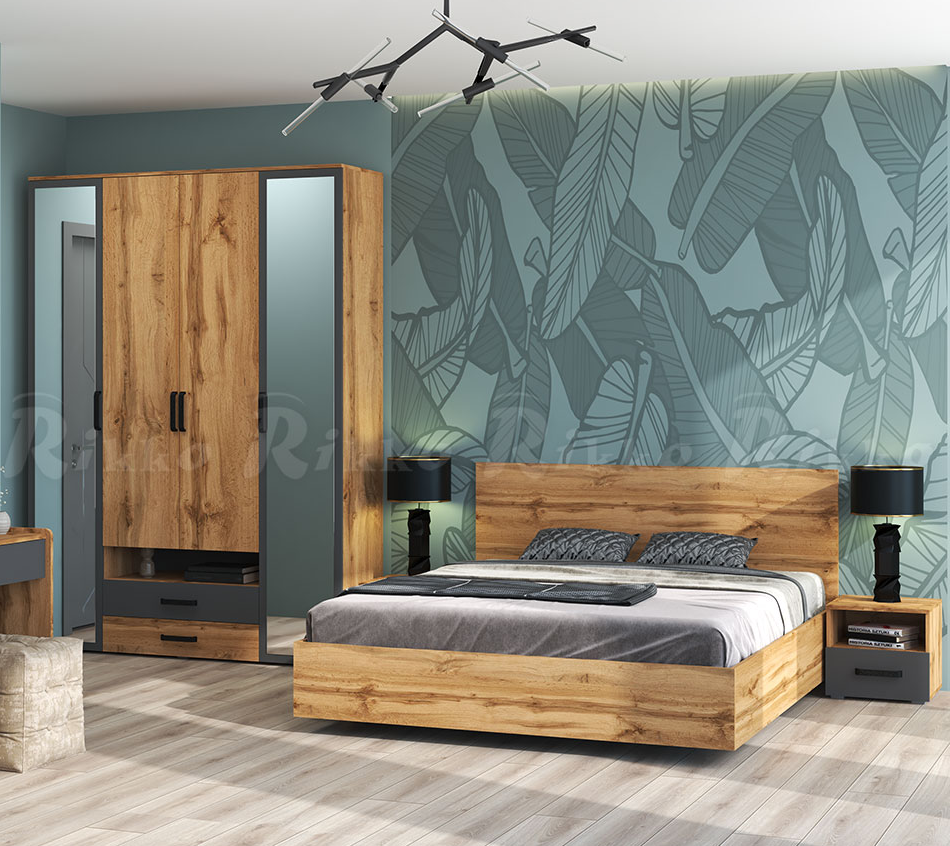 Спальня «Аризона» Комплект 3 - Графит/Дуб Вотан (Рикко)