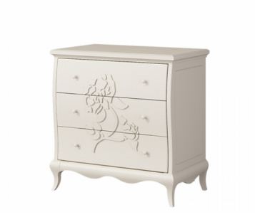 Строгие линии форм, сочетание гладкости и фрезеровки фасадов, изящные опоры. Материал: МДФ, ЛДСП.