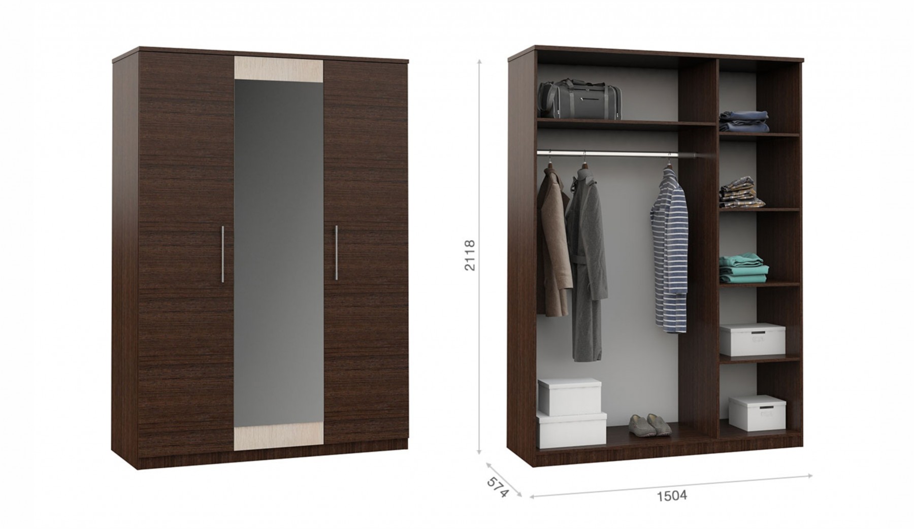 Сочетание темного и светлого оттенка. Трехдверный шкаф.