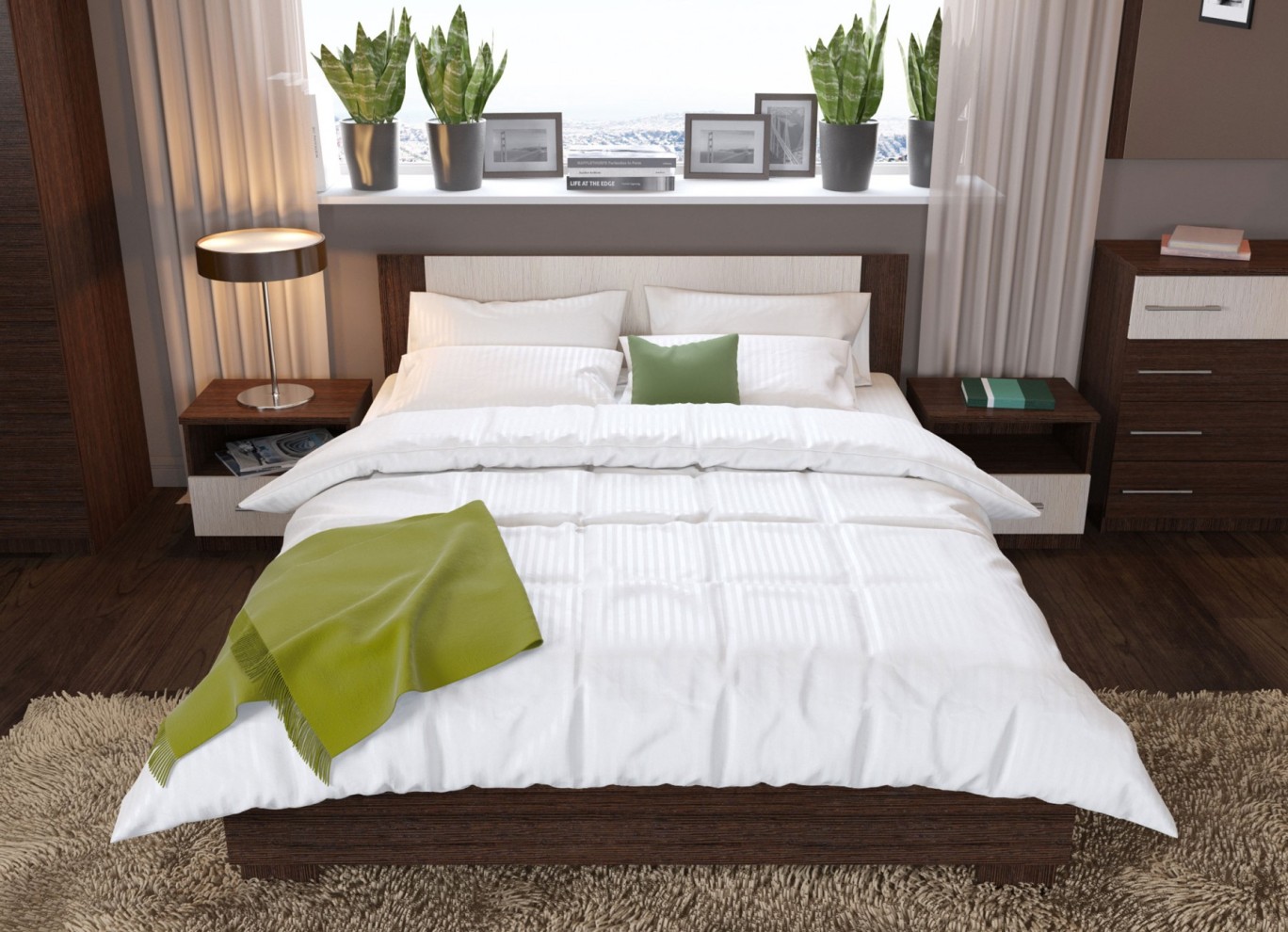 Стильный двухцветный набор для спальни. Строгая геометрия и расцветка.