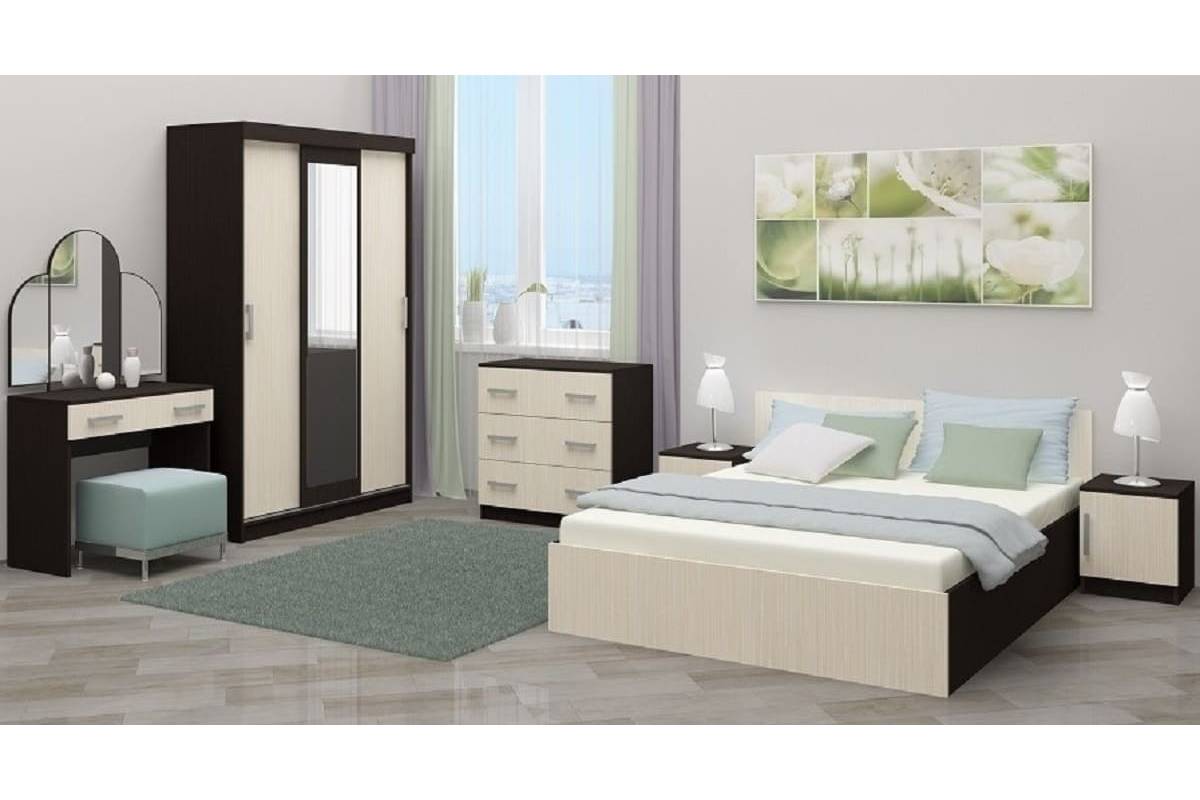 Состав набора: кровать с настилом, комод, шкаф-купе, тумба 2 шт.