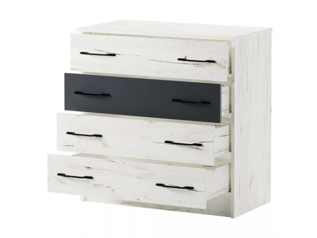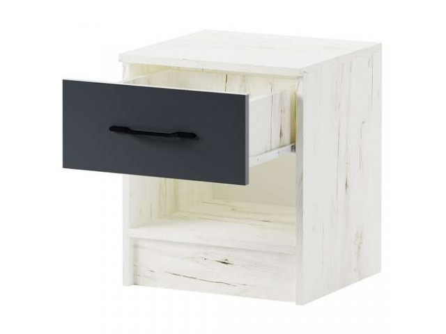 Спальня Беатрис №4 Дуб Крафт белый – Антрацит - имеет выдержанный и лаконичный дизайн. В этой коллекции мебели для спальни прекрасно сочетается стильный декор «Дуб Крафт белый» с контрастной вставкой в изголовье декора «Антрацит». На фасады устанавливаются стильные матовые металлические ручки в чёрном цвете.