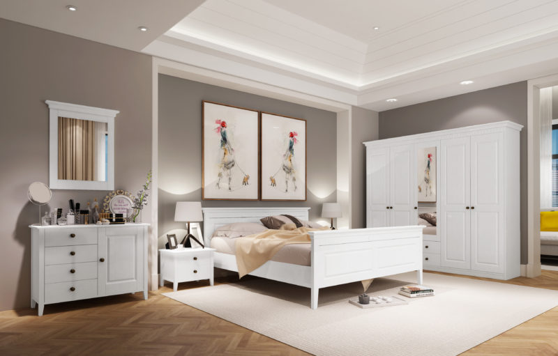 Коллекция в сдержанном классическом стиле для спальни. Материал: ЛДСП, профиль МДФ.