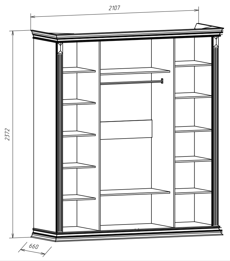 Шкаф для одежды: H2372 х B2107 х T679 мм.