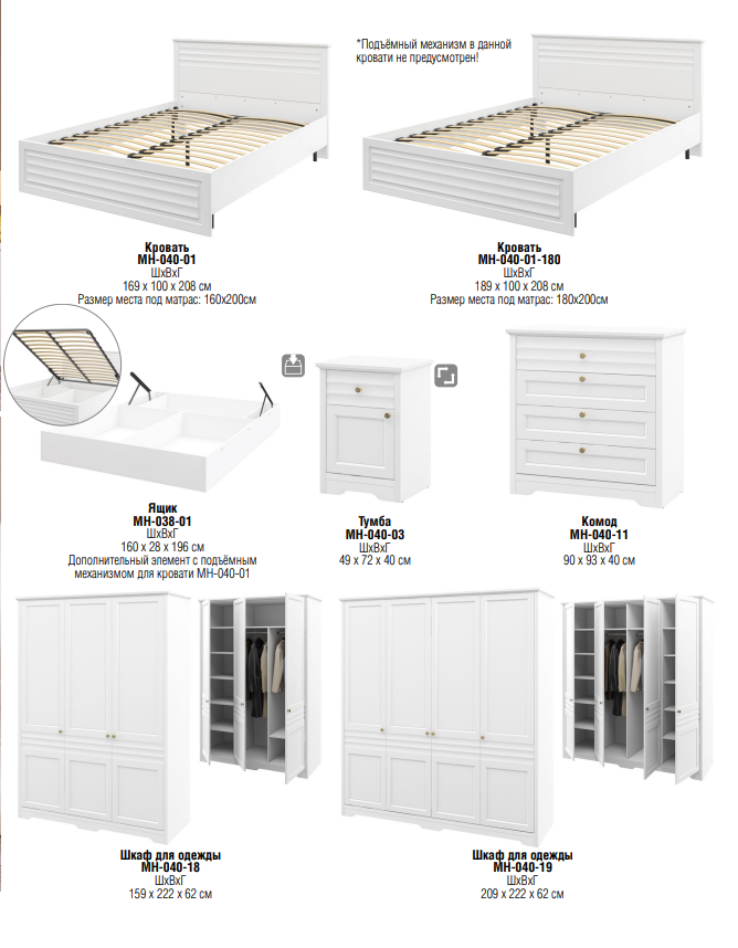 Классическая коллекция мебели для обустройства спальной комнаты. Материал: МДФ покрытый плёнкой, ЛДСП.