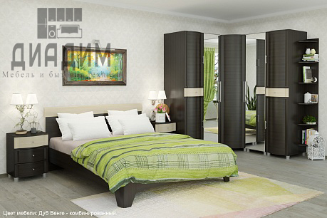 Состав набора: кровать с настилом, комод, шкаф-купе, тумба 2 шт.
