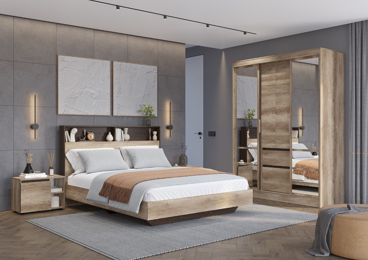 код 152709В наборе: кровать 1,6 м., шкаф-купе, тумба прикроватная 2шт.
