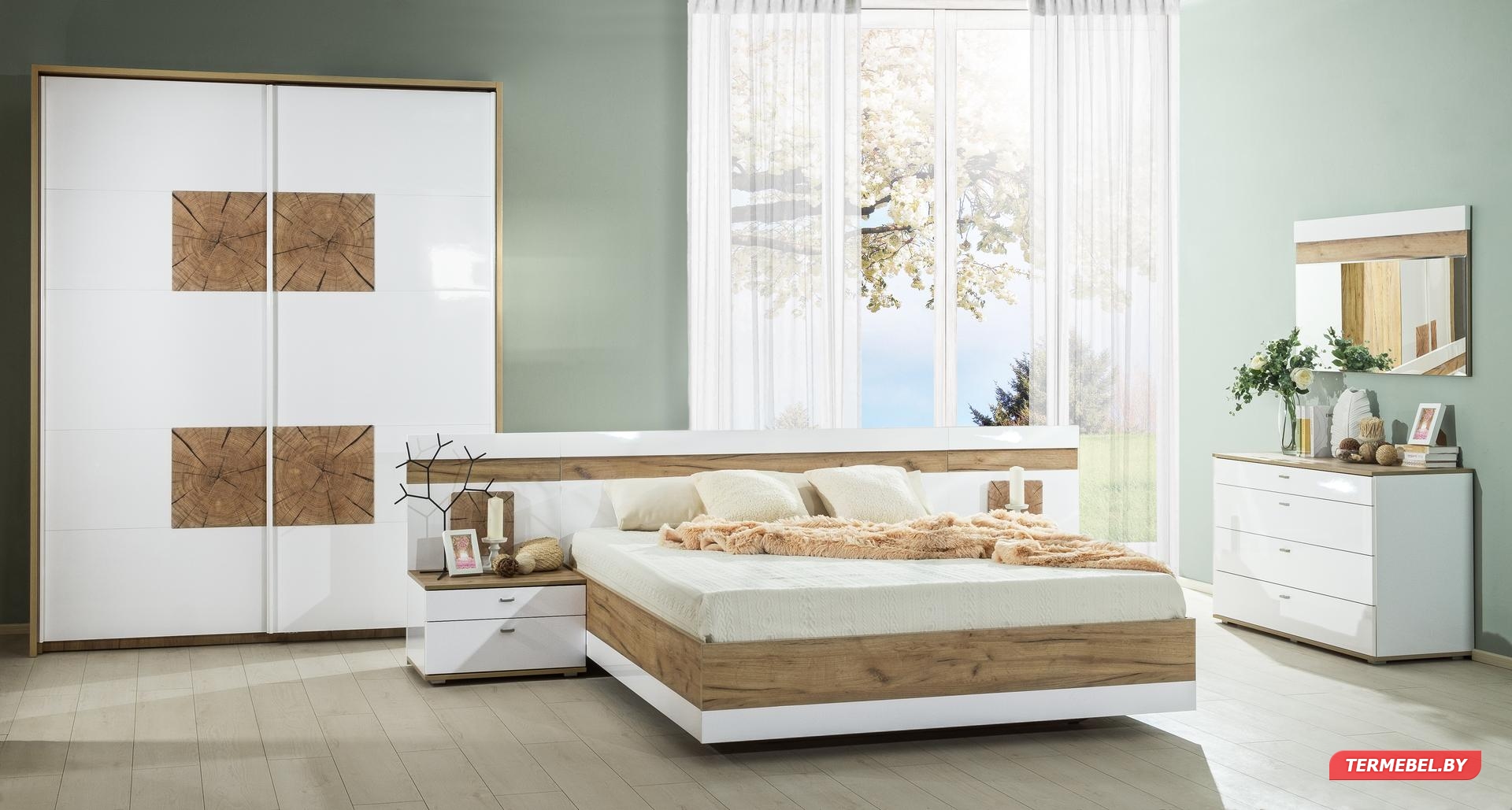 Белый спальный гарнитур с глянцем. Широкий модульный ряд.
