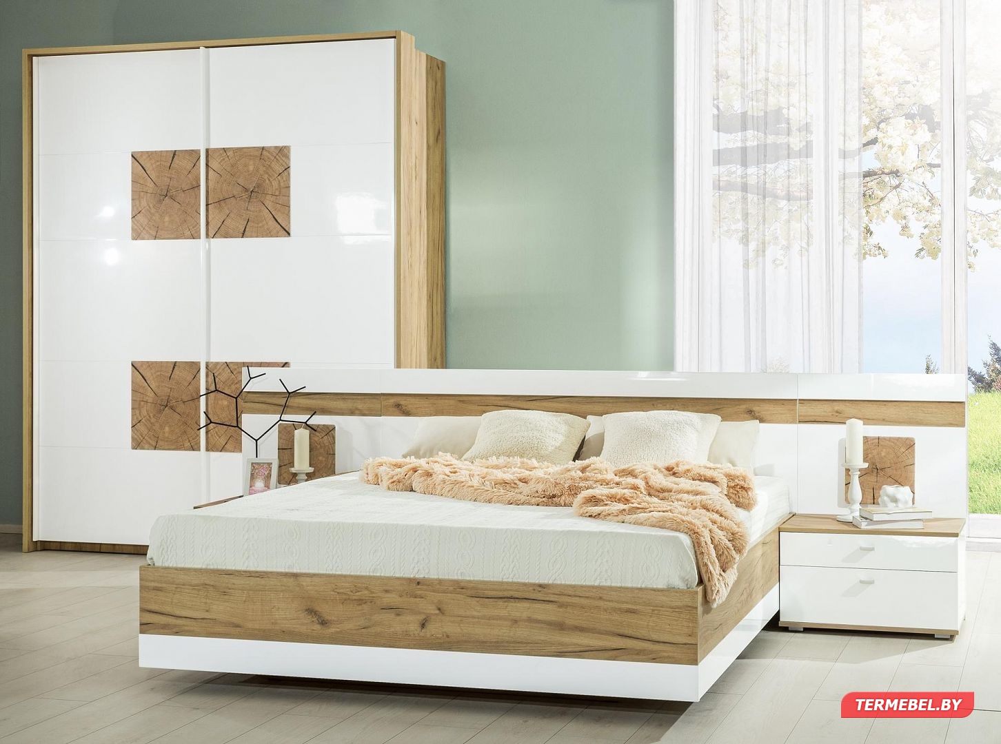 Модульная спальня «Аврора» белый-ателье светлый, вариант 1