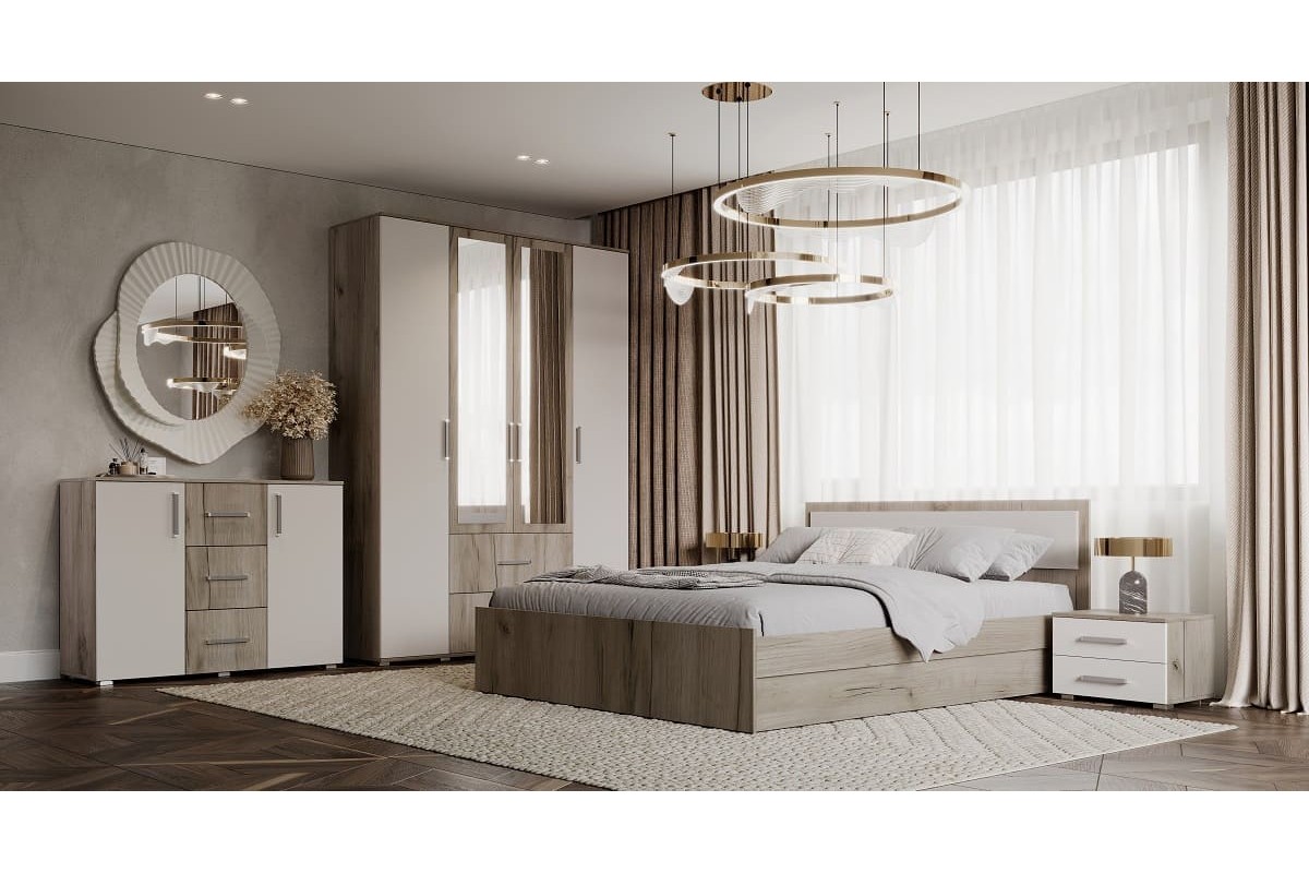 Спальня «Мишель» крафт золотой/белый жемчуг