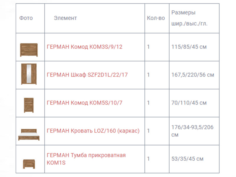 Другие элементы линейки «Герман», которыми можно доукомплектовать данный гарнитур, смотрите на фото в галерее.