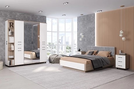 Спальня «Белладжио» Комплект 1 - Белый глянец/Дуб сонома (BTS)