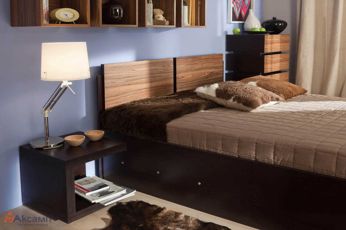 Спальный гарнитур Hyper является воплощением простоты и функциональности. Отличительная особенность гарнитура Hyper – контрастное сочетание в декоре цветов Венге и Палисандр, а также безупречные технические и дизайнерские решения.