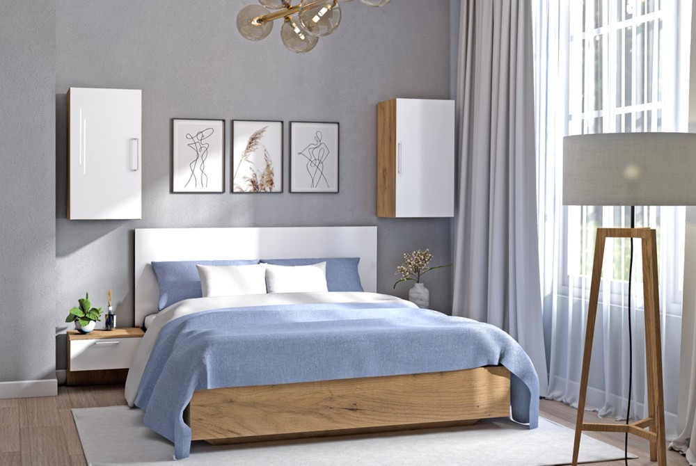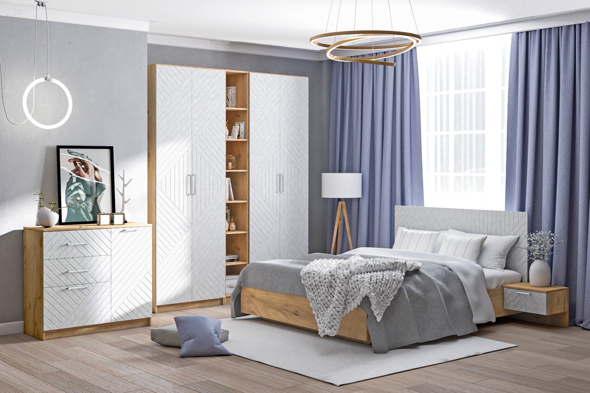 Комплект мебели для спальни линейки Онтарио, изготовленный из ЛДСП.