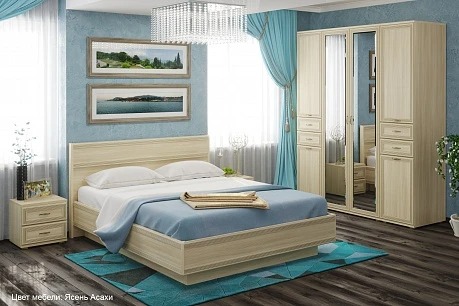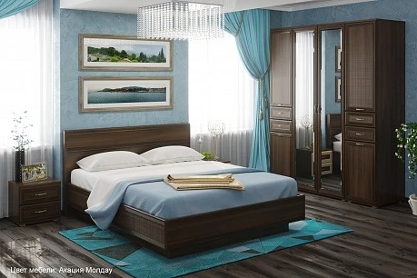 Модульная коллекция мебели для обустройства спальной комнаты. Материал: ЛДСП, МДФ покрытый плёнкой.