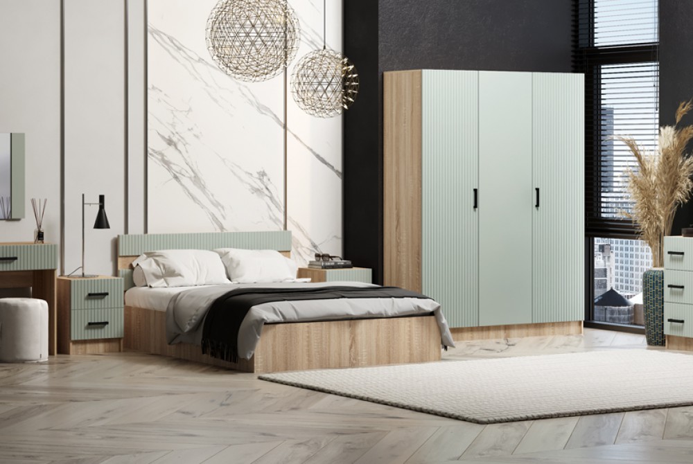 Уютная и лаконичная коллекция для спальни, располагающая к отдыху. Материал: МДФ, ЛДСП.