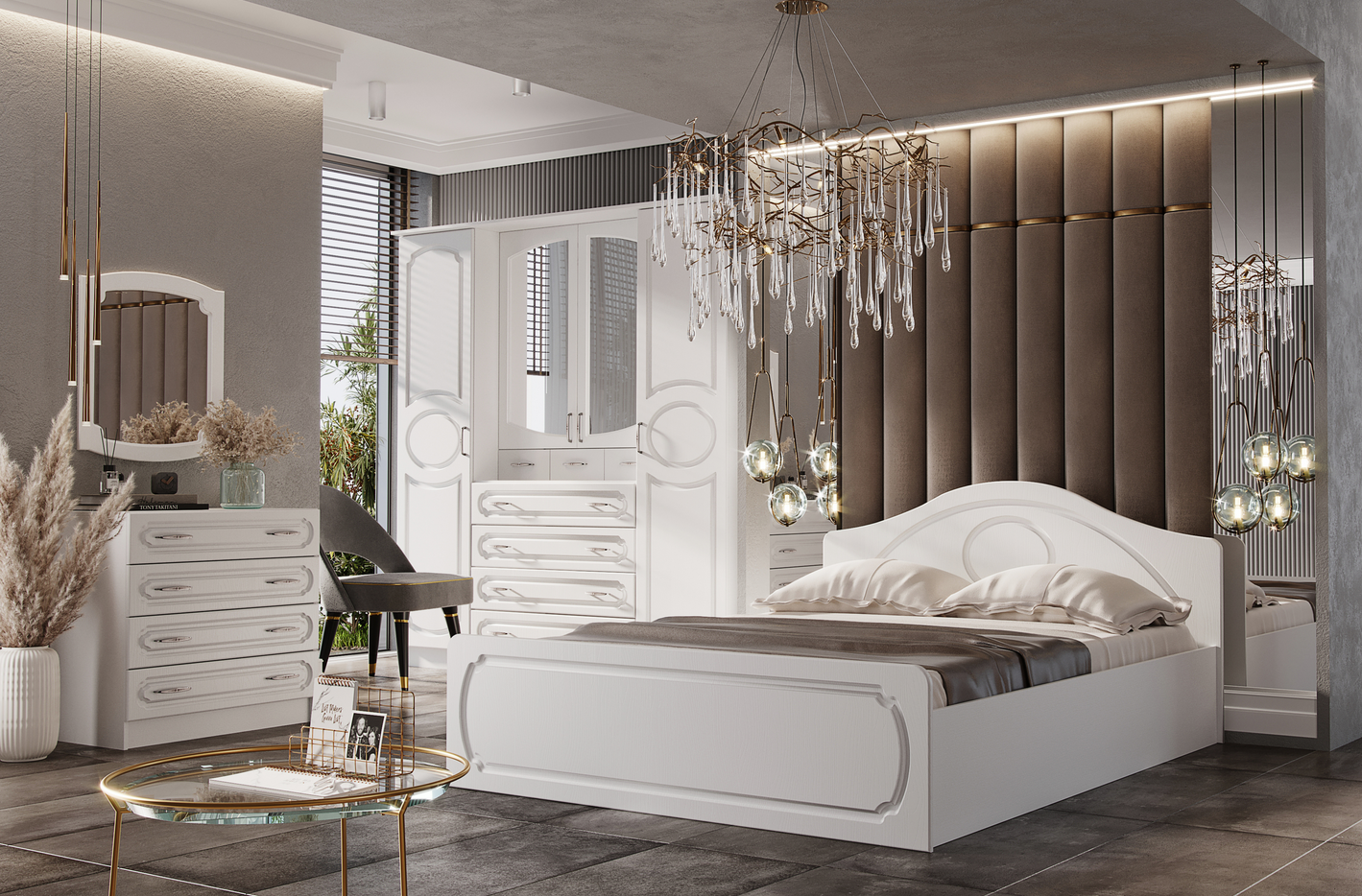 Классическая коллекция мебели в белом полуглянце для спальни. Материал: МДФ покрытый плёнкой, ЛДСП.