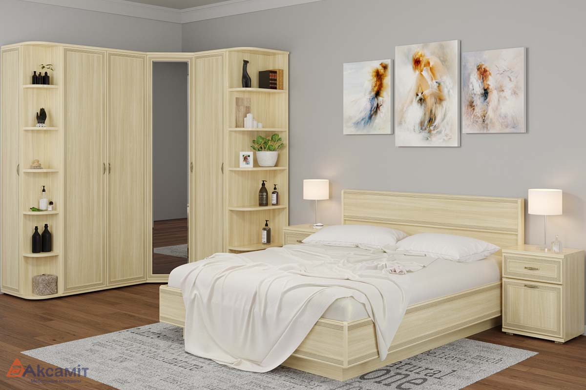 Коллекция модульной мебели для спальни в светло-кремовой гамме. Материал: ЛДСП, МДФ.