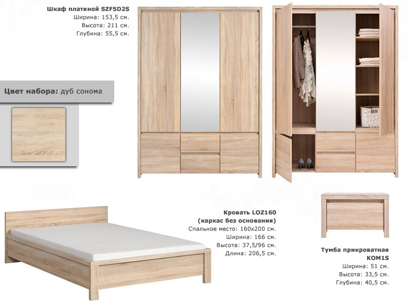 Спальня «Леонардо» комплект 1, белый/дуб сонома (Мебель-Неман)