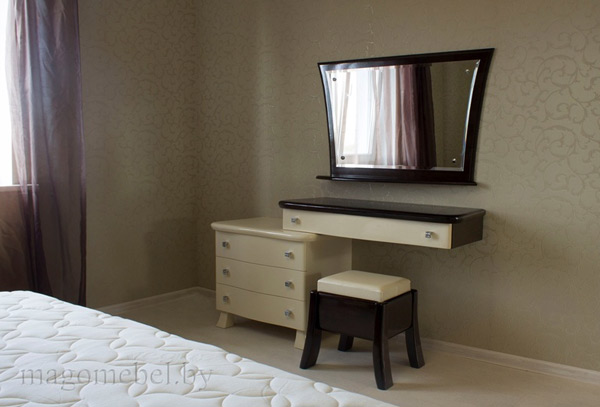 Комплектация: туалетный столик, двуспальная кровать, тумба, зеркало.